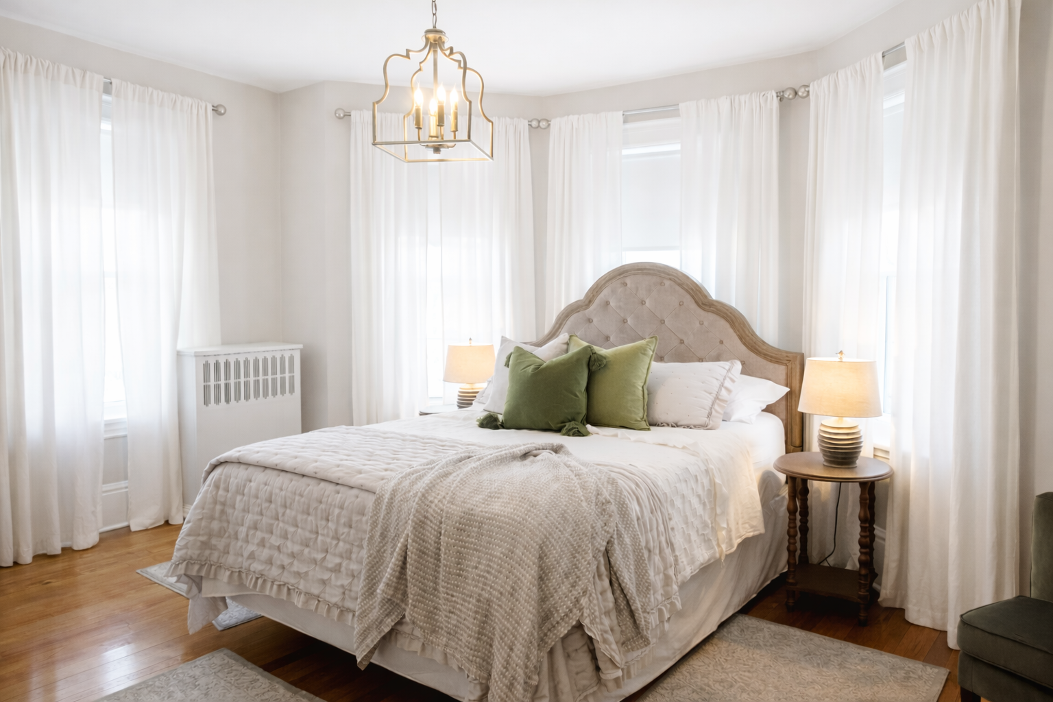 This King Ensuite Room off approximately 200 square feet has the best view with its large antique window facing front garden with a newly built bathroom. Located in the third floor. Comes equipped with a smart TV, accent chair, closet, dresser, high end bedding, air conditioner and Dolm white noise machine. Bathroom with all amenities needed including shampoo, hair conditioner, body gel soap and hair dryer.